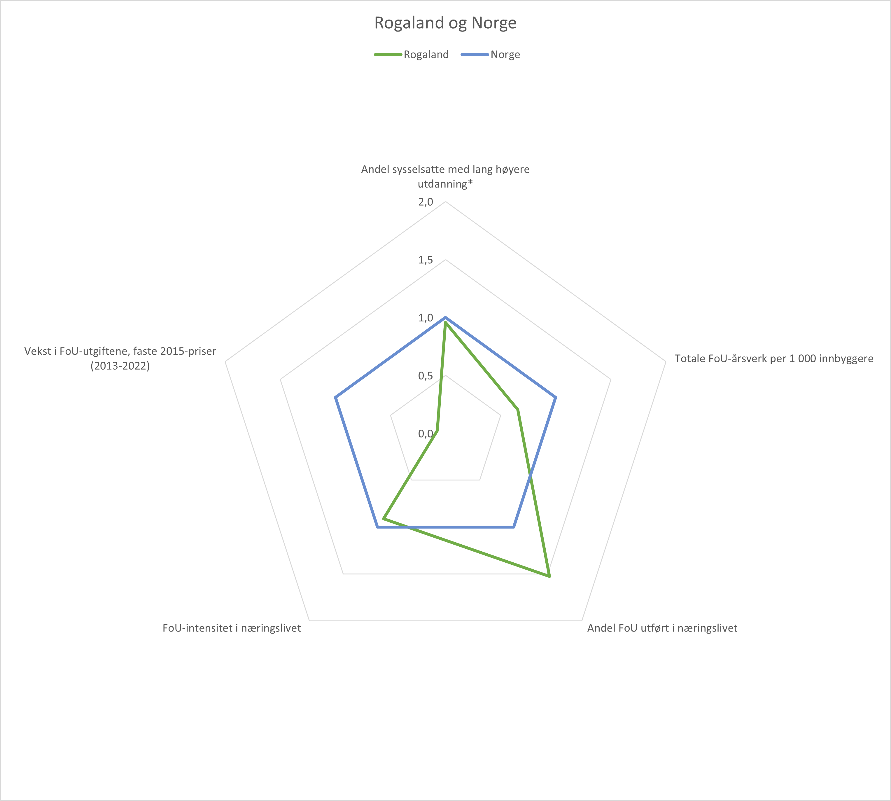 Men også i Rogaland og Møre og Romsdal er det næringslivet som står for den klart høyeste andelen av FoU-aktiviteten. I begge disse fylkene står næringslivet for over 70 prosent av FoU-aktiviteten. Troms og Finnmark er fylket hvor næringslivet har den klart laveste andelen av FoU-aktiviteten, med kun 19 prosent. Deretter følger Trøndelag og Vestland, hvor næringslivets andel av FoU-aktiviteten er under 40 prosent.